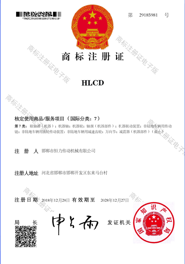 恒力商標(biāo)注冊(cè)證